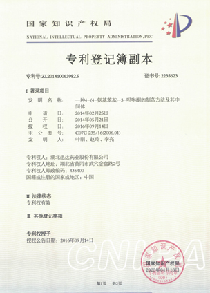 公司擁有一支高素質(zhì)科研隊(duì)伍,具備專業(yè)而高效的研發(fā)能力。近幾年,共取得科技成果30項(xiàng),其中9項(xiàng)獲國家發(fā)明專利,2項(xiàng)獲湖北省科技進(jìn)步獎(jiǎng),開發(fā)新產(chǎn)品8個(gè),綠色合成、手性合成和催化等技術(shù)引領(lǐng)行業(yè)發(fā)展。主要銷往歐美、日本、韓國、中東、印度等40多個(gè)國家和地區(qū)。